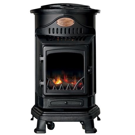 Poêle à gaz Fonte véritable 3400W NOIR Effet feu Provence UNIVERSAL