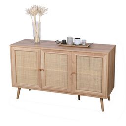 Buffet 3 portes BaliLe buffet 3 portes Bali couleur bois naturel et rotin offrira un espace de rangement supplémentaire à votre intérieur tout en garantissant un charme exotique élégant à votre maison.Il vous permettra par sa taille d'entreposer toutes vos affaires personnelles ou vaisselle. Look bohème chic garanti avec ses trois grandes portes en maillage en rotin.Caractéristiques du buffet 3 portes Bali :Dimensions : L. 120 x P. 39 x H. 70 cmCharge maximale étagère : 5 kgCharge maximale totale : 50 kgPanneaux de particules PB 15 mm recouverts d'une feuille PU imitation boisMaillage en rotinPoids : 25 kgA monter soi-même