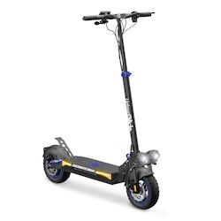 Avec ses pneus 10'' tubeless, ses suspensions intégrées et son double frein à disque, elle assure une conduite stable et sécurisée. Elle est pliable, dispose de poignées rabattables, d'un éclairage LED complet avec clignotants et supporte jusqu'à 120 kg. Certification IPX5
