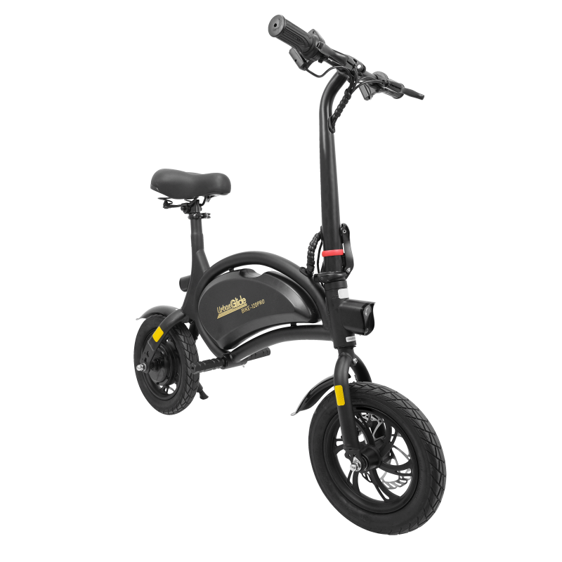 ## URBANGLIDE BIKE 120PLUS – Vélo électrique pliable pour adultes ### DescriptionLe vélo électrique **URBANGLIDE BIKE 120PRO** est conçu pour offrir une mobilité urbaine pratique et efficace. Avec une vitesse maximale de **25 km/h** et une autonomie de **jusqu'à 18 km**, ce vélo est parfait pour les