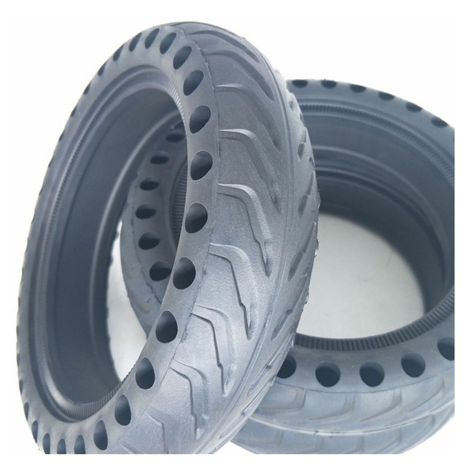 Lot de 2 pneus plein alvéolé anti-crevaison de haute qualité compatible Xiaomi Mija/M365. Permet d'éviter les crevaisons, et sa mémoire tampon permet de retrouver sa forme suivant la pression et les changements de températures.