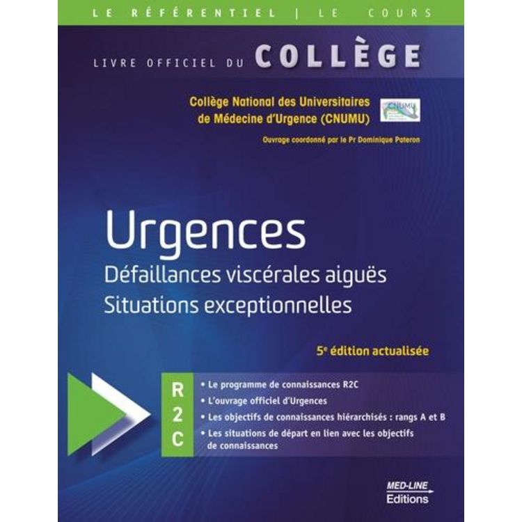- L'ouvrage officiel réalisé par le Collège National des Universitaires de Médecine d'Urgence (CNUMU) pour les étudiants du DFASM. - Conçu et rédigé par près de 100 enseignants de la discipline. - Tout le programme de connaissances de la spécialité pour la R2C et pour les modules du DFASM. - Pour chaque item, les objectifs de connaissances hiérarchisés en rang A et rang B (dans un tableau en début d'item et tout au long de l'item grâce à un repérage couleur). - Toutes les situations de départ en lien avec les différents objectifs de connaissances (tout au long de l'item grâce à un repérage couleur, et à la fin de l'item dans un tableau récapitulatif). - Une iconographie abondante pour faciliter l'apprentissage. - Une fiche de synthèse par item pour retenir l'essentiel.