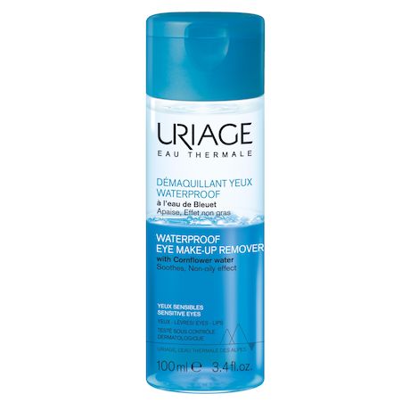 La formule du Démaquillant Yeux Waterproof a été spécialement conçue pour les femmes ayant les yeux sensibles. Il permet de démaquiller très rapidement les maquillages les plus intenses. L'efficacité démaquillante est liée à sa formule biphase : la phase grasse solubilise les formules waterproof tandis que la phase aqueuse limite la sensation de gras. Grâce à l’Eau florale de bleuet et à l’Eau Thermale d’Uriage, ce démaquillant apaise et apporte une sensation de confort.