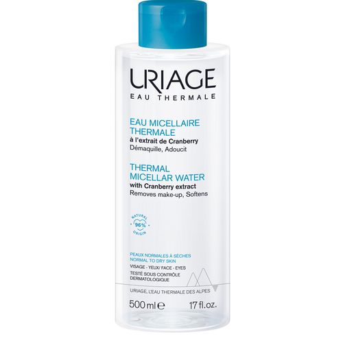 La nouvelle formule de l'eau micellaire pour les peaux normales à sèches est constituée de 96% d'ingrédients d'origine naturelle et participe aux défenses naturelles de la peau grâce aux nouvelles propriétés brevetées de notre Eau Thermale. Leurs tensioactifs non ioniques doux, constitutifs des micelles, agissent comme des aimants capturant efficacement le maquillage et les impuretés Cette eau micellaire démaquille, nettoie et élimine en douceur toutes les impuretés de la peau et tout type de maquillage, même waterproof. Enrichie en extrait de Cranberry et Eau Thermale d'Uriage, cette eau micellaire hydrate la peau en la laissant douce et souple.