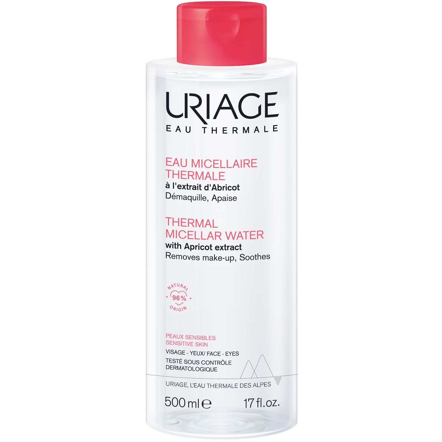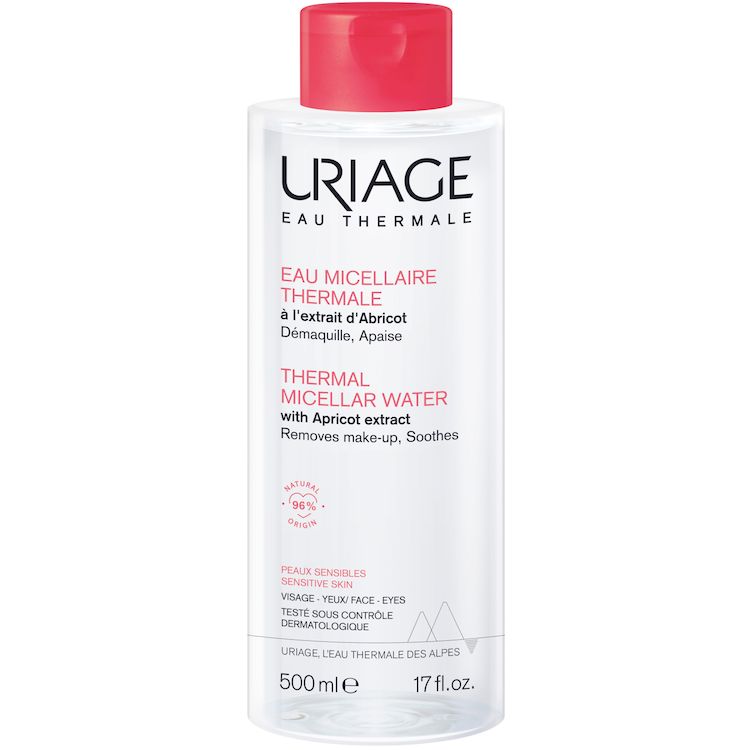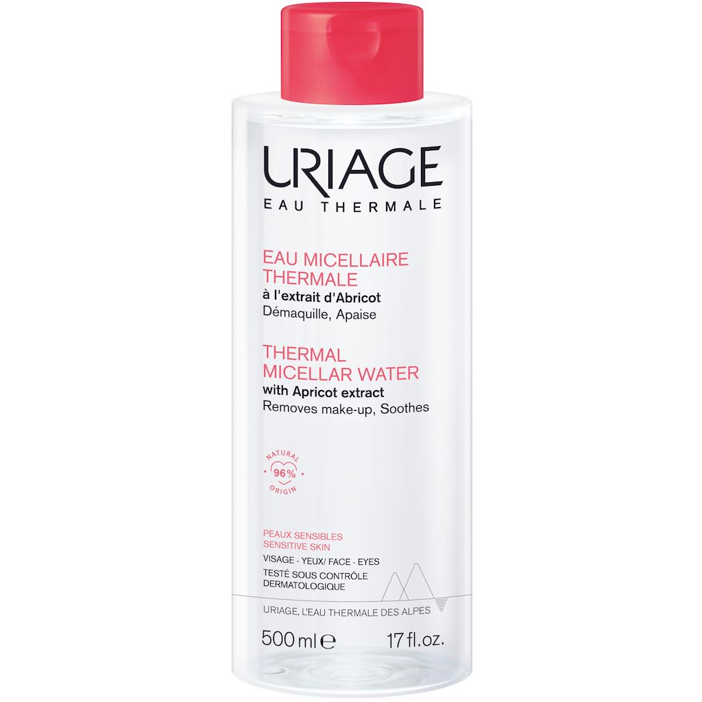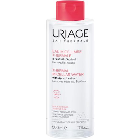 La nouvelle formule de l'eau micellaire pour les peaux sensibles est constituée de 96% d'ingrédients d'origine naturelle et participe aux défenses naturelles de la peau grâce aux nouvelles propriétés brevetées de l' Eau Thermale d'Uriage. Leurs tensioactifs non ioniques doux, constitutifs des micelles, agissent comme des aimants capturant efficacement le maquillage et les impuretés. Cette eau micellaire démaquille, nettoie et élimine en douceur toutes les impuretés de la peau et tous types de maquillage, même waterproof. Enrichi en extrait d'abricot et en Eau Thermale d'Uriage, cette eau micellaire apaise et diminue les sensations de tiraillements.