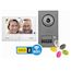 Contenu du kit : Moniteur + Etrier de fixation, Plaque d'appel Mikra, Alimentation, Coupleur de bus 2 fils, 5 badges de couleur, 2 puces dicrètes adhésives, Carte de programmation.