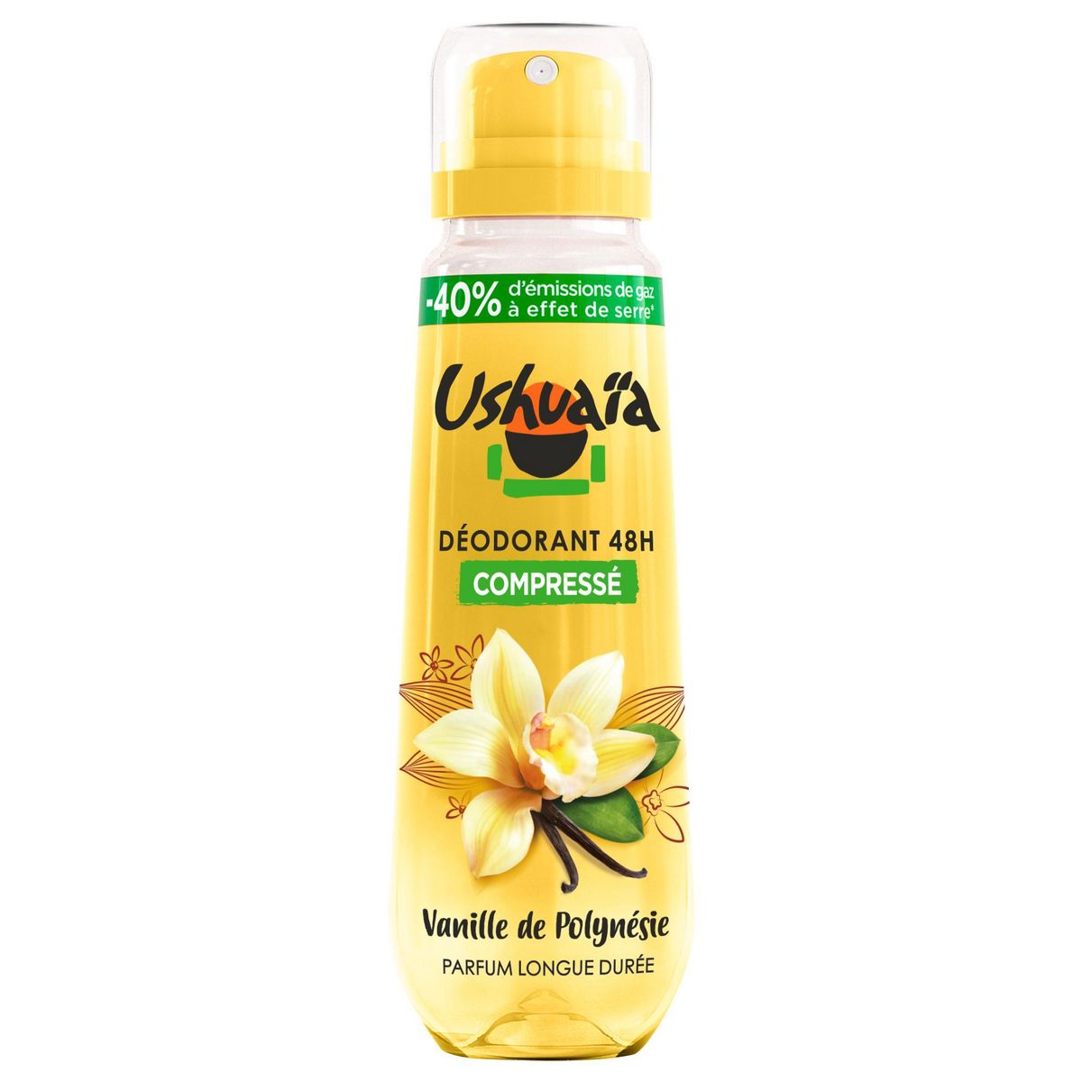Déodorant compressé Ushuaïa à la Vanille de Polynésie : - Parfum longue durée et efficacité 48h - Déodorant éco- conçu : - 40% d'émissions de gaz à effet de serre*/- 36% d'eau utilisée* /- 36% d'énergie non renouvelable* *(Évaluation environnementale du cycle de vie complet du produit vs. la version non compressée en aluminium) Bénéficiez d'une douceur et une protection tout au long de la journée.
