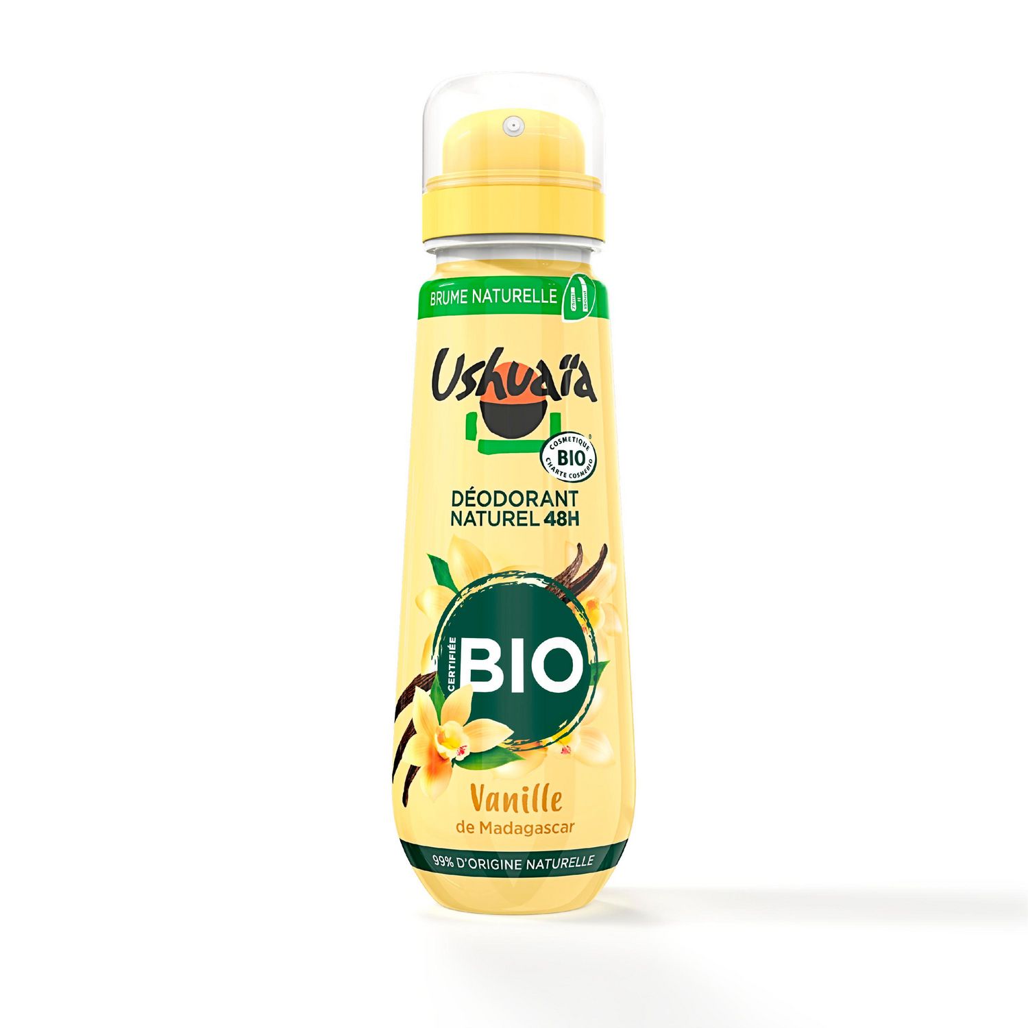 Déodorant Brume Naturelle Ushuaïa certifiée BIO à la Vanille de Madagascar, parfum longue durée et efficacité 48h. Votre peau reste douce et protégée pendant 48h.