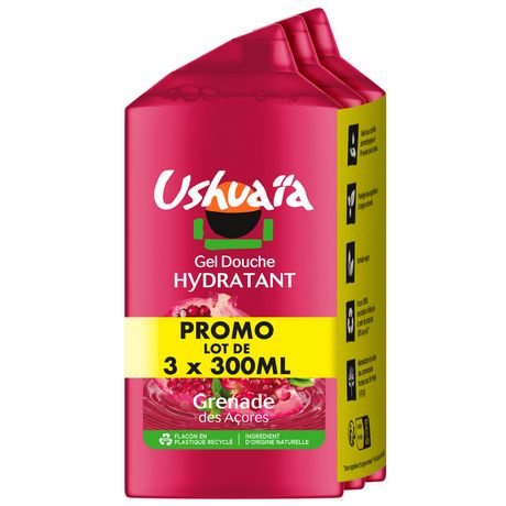 Ushuaia, douche, gel douche, parfum, naturalité, flacon recyclable, PCR, grenade