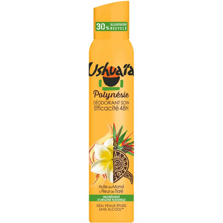 Déodorant Ushuaïa à l'Huile de Monoï et Fleur de Tiaré : - Efficacité 48h - Un parfum frais et ensoleillé - Un déodorant engagé par nature : actif anti- odeur d'origine naturelle, vegan, pH neutre, testé dermatologiquement, flacon recyclable Bénéficiez d'une protection toute la journée contre les effets de la transpiration, dans le respect optimal de votre peau.