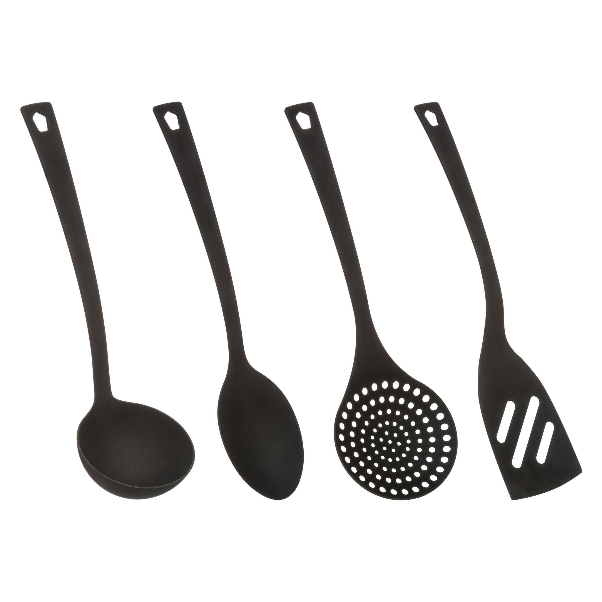 Compatible au lave vaisselle Louche : l. 29 cm , D. 6.5 cm Cuillère : l. 28.5 cm , L. 6 cm écumoire : l. 30 cm , L. 9.5 cm Spatule : l. 31.5 cm , L. 7 cm