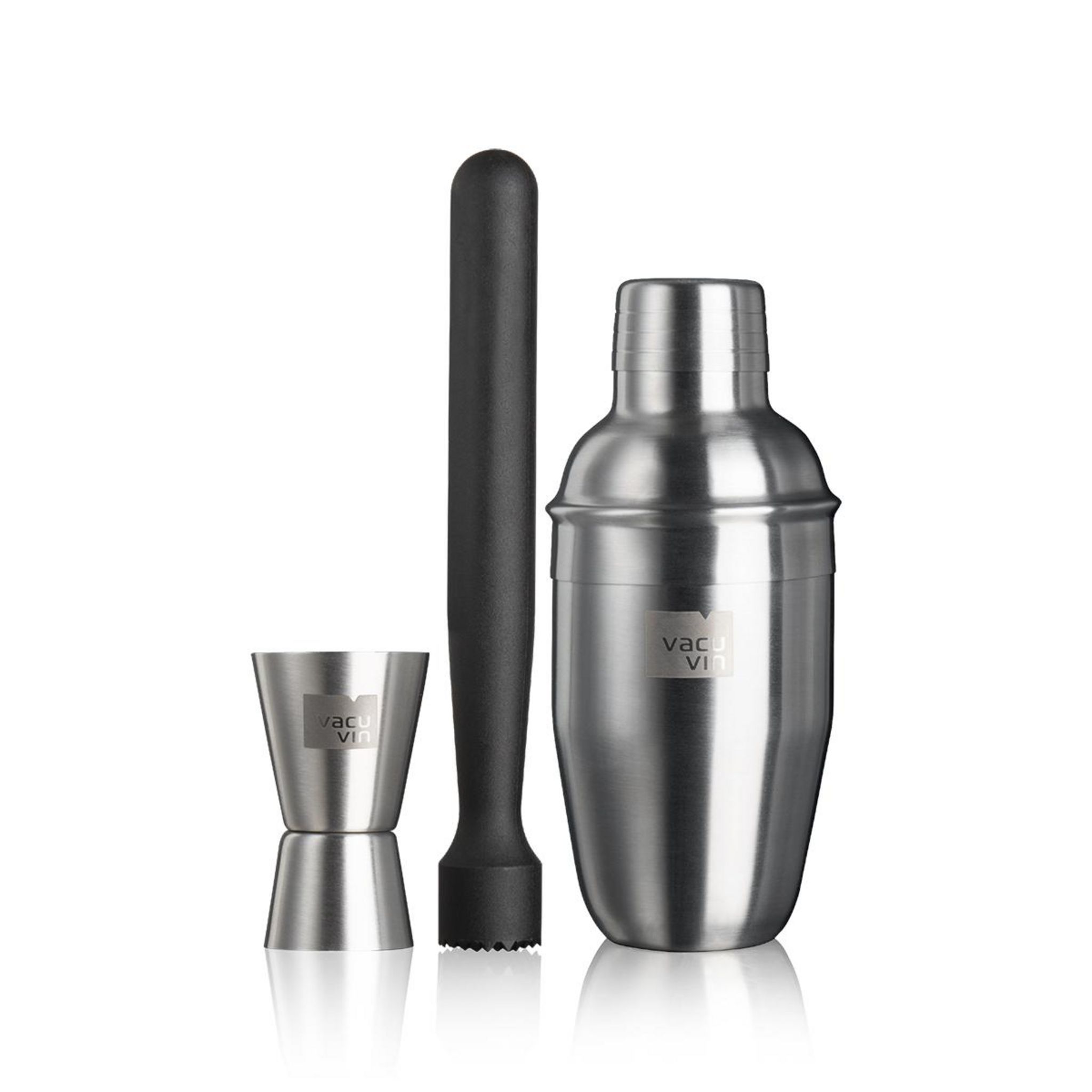 Vacu Vin 7889362 Ce Cocktail Set contient 3 accessoires essentiels pour créer vos cocktails ou boissons mélangées préférés. Le kit parfait pour les amateurs de cocktails qui débutent dans ce domaine ! - Shaker à cocktail (350 ml) avec filtre intégré pour préparer une boisson.Double verre doseur (15-