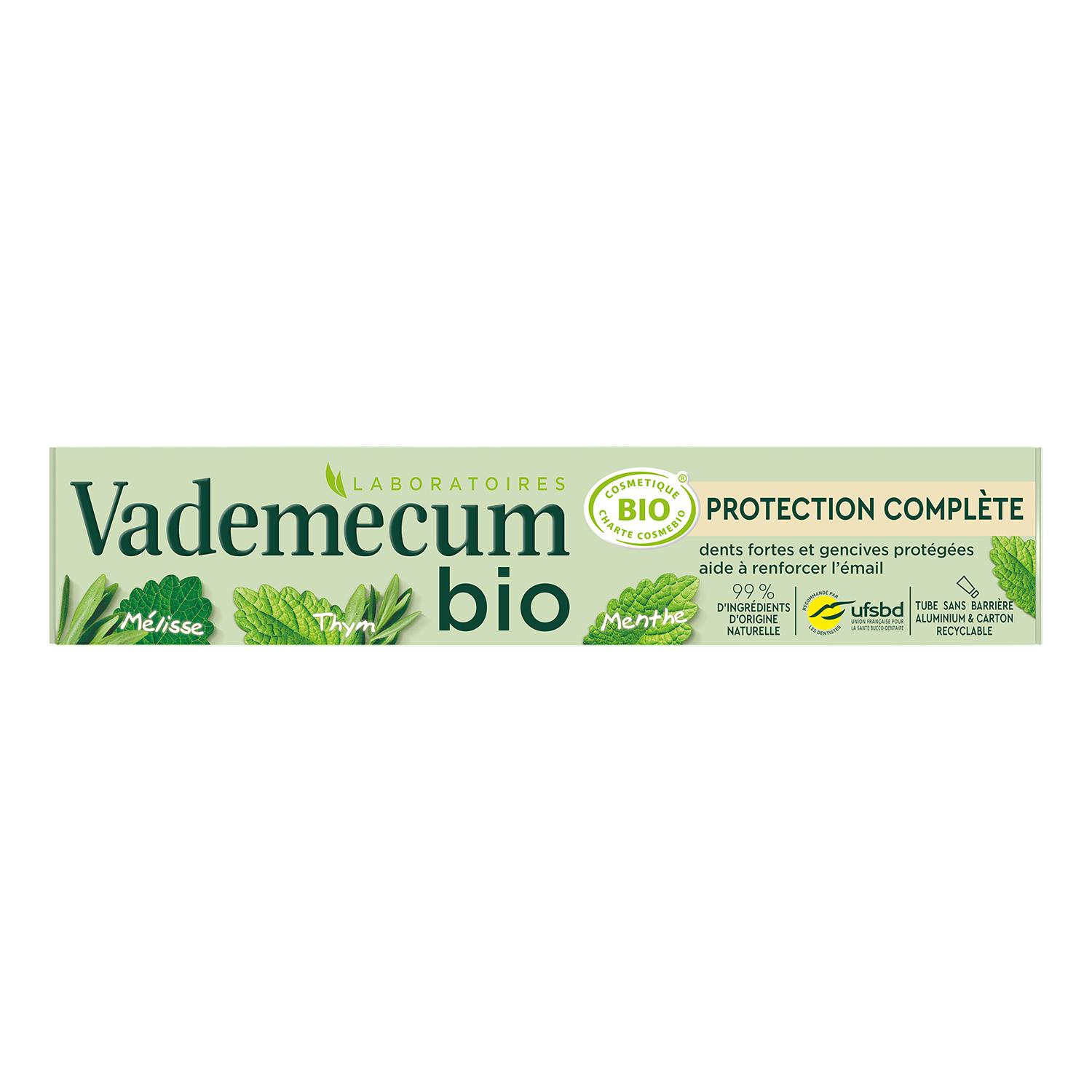 VADEMECUM dentifrice Bio Cosmos Organic protection complète mélisse thym menthe 75ml