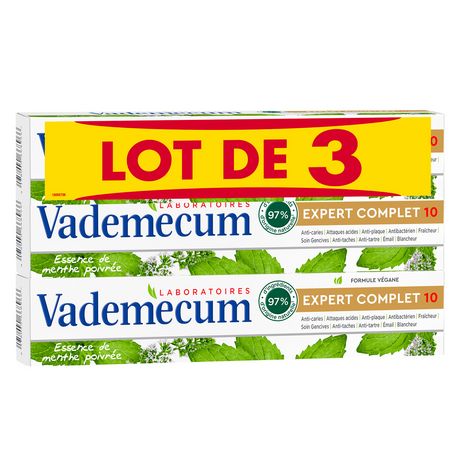 VADEMECUM Dentifrice Expert Complet 10 Lot de 3 Tubes de 75ml
