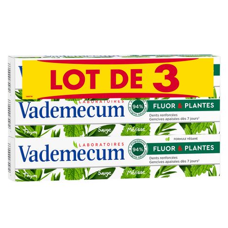 VADEMECUM Dentifrice Fluor & Plantes Lot de 3 Tubes de 75ml