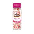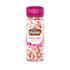 Ingrédients : sucre, farine de riz, dextrose, sirop de sucre inverti, eau, huile de TOURNESOL, amidon de pomme de terre, sirop de glucose, épaississant : e414, arôme naturel de vanille, sel, acidifiant : e330, agents d'enrobage : e903, e901, e904, arôme naturel, denrées alimentaires colorantes : radis, cassis, pomme, extrait de radis, extrait de cassis, extrait de pomme, colorant : e100. peut contenir lait, ble et fruits a coque.
