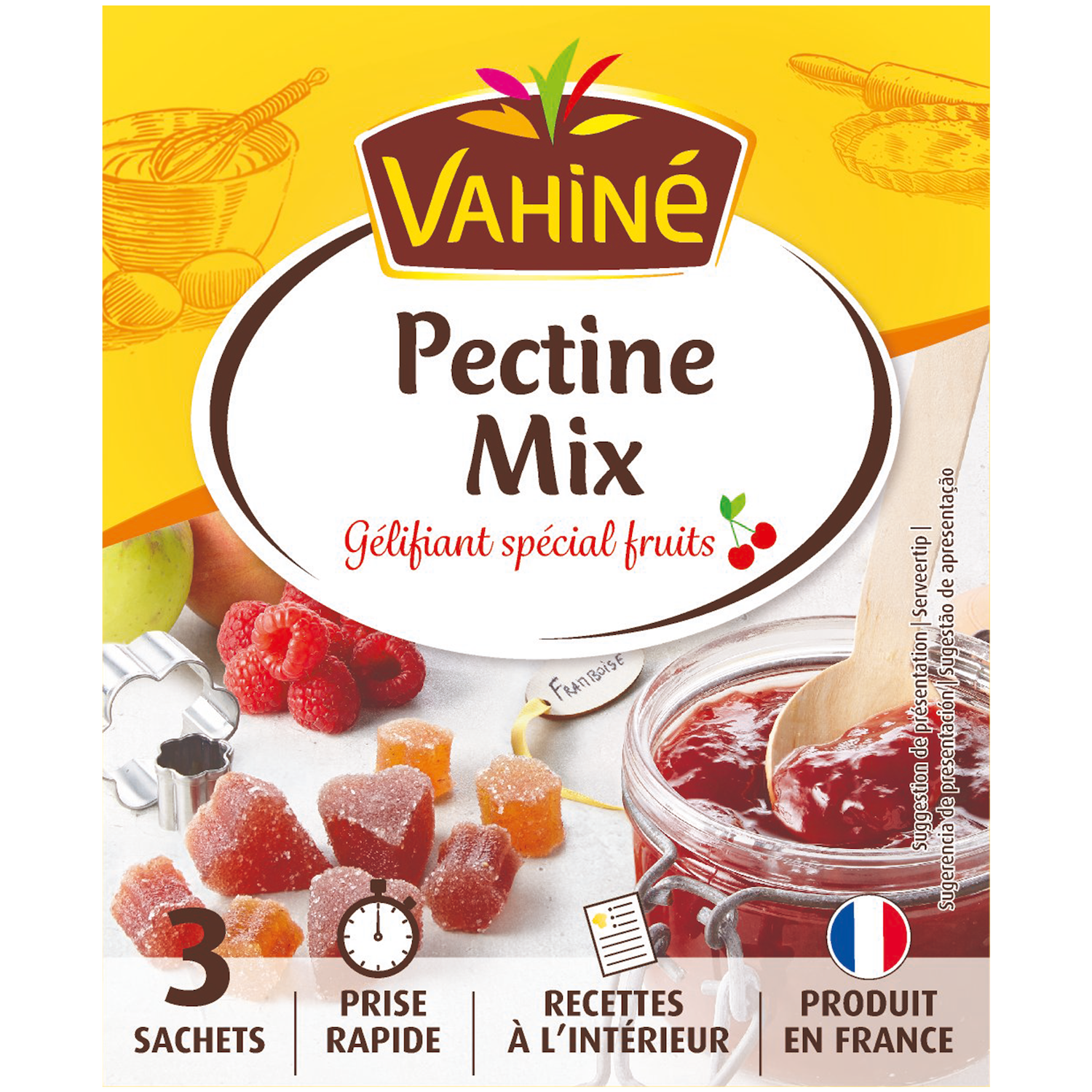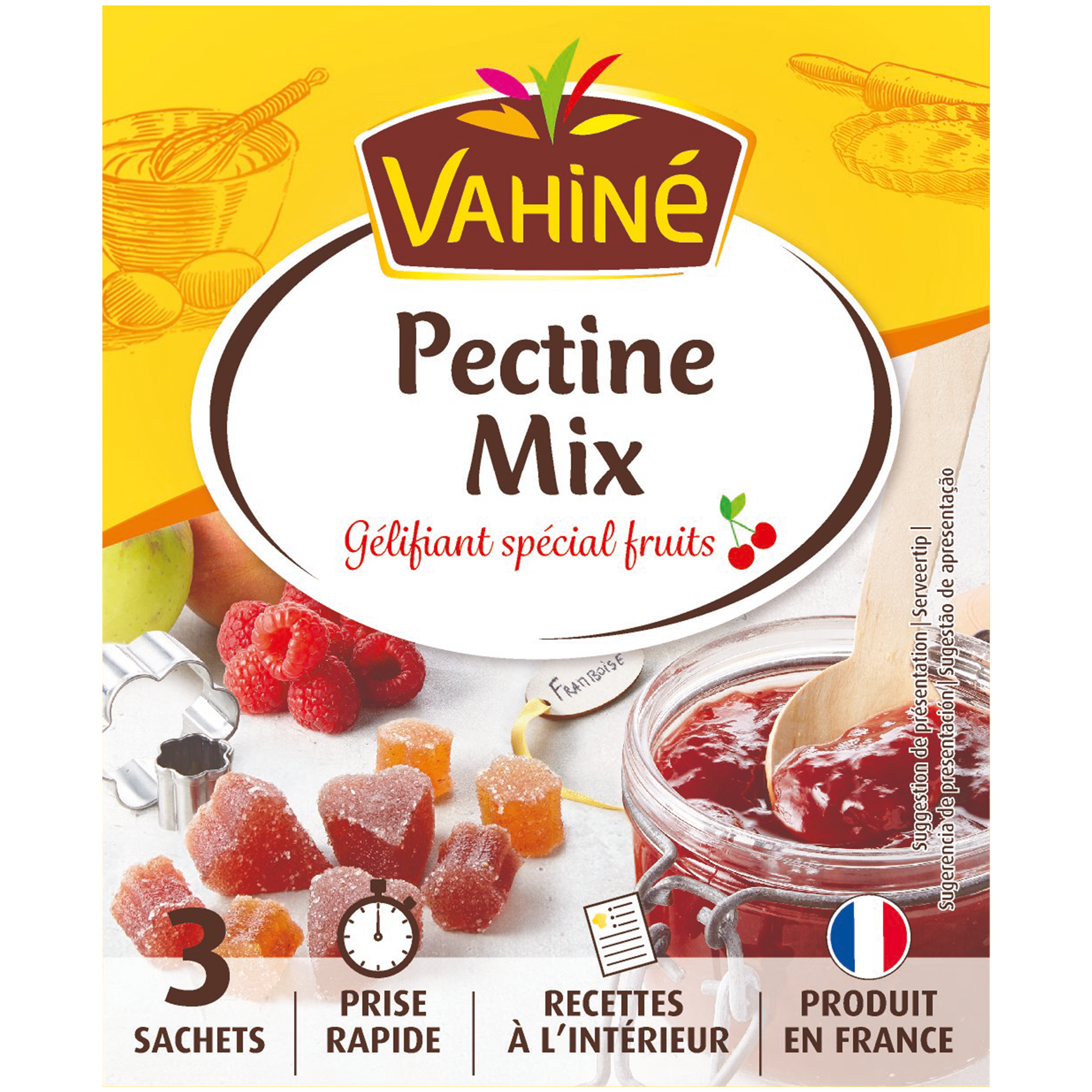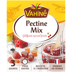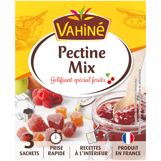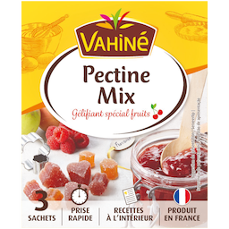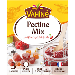 Prélevez 50g de sucre dans lequel disperser le mélange, puis saupoudrez sur les fruits au début de l'ébullition. Remuez régulièrement jusqu'à cuisson complète.La texture finale est obtenue 24h après refroidissement.. Confiture:Cerise - Fraise - Mûre (Qté fruits: 650g-700g / Qté sucre: 450-500g / 2 cuill. à soupe jus de citron / 1 sachet Pectine Mix)Abricot - Prune - Myrtille (Qté fruits: 750g-850g / Qté sucre: 550-650g / 2 cuill. à soupe jus de citron / 1 sachet Pectine Mix)Framboise - Pomme - Orange (Qté fruits: 900g-1kg / Qté sucre: 700-900g / 2 cuill. à soupe jus de citron / 1 sachet Pectine Mix)