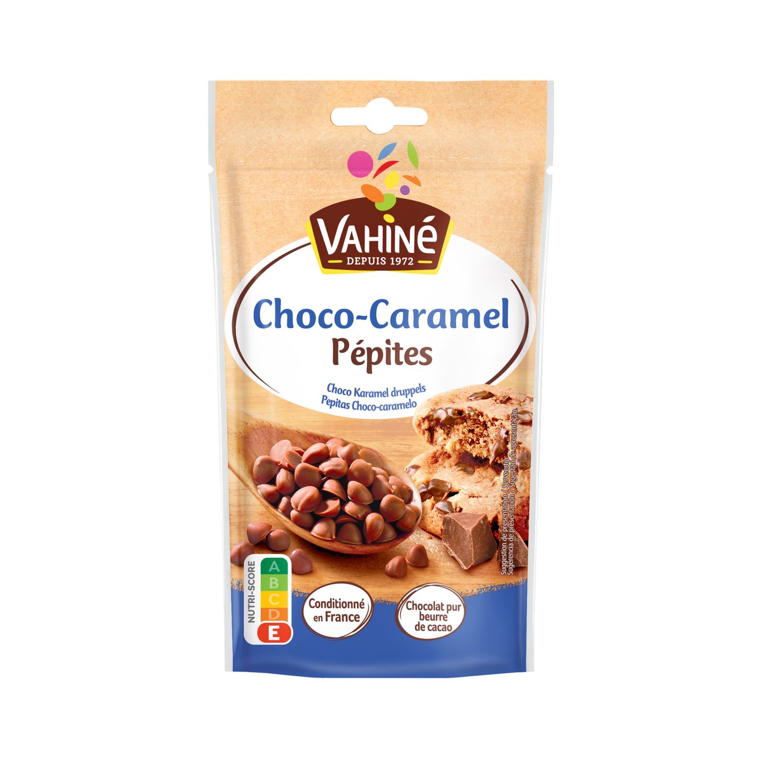 Des pépites saveur choco-caramel avec un chocolat pur beurre de cacao, conditionné en France.