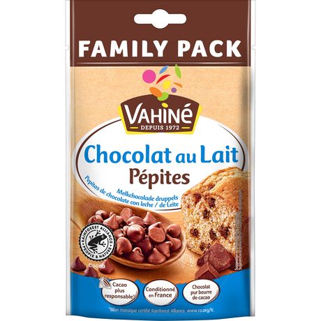 Pépites de chocolat au lait. (cacao : 27% minimum).