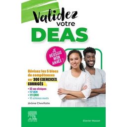 Centré sur le contrôle de connaissances du nouveau diplôme d'Etat d'aide-soignant (DEAS) cet ouvrage répond aux exigences des candidats soucieux d'aborder sérieusement l'ensemble du programme de la formation d'aide-soignant au regard du dernier référentiel mis en application en 2021 avec le découpage selon les 5 grands blocs de compétence et 10 modules : - Module 1 : Accompagnement d'une personne dans les actes de sa vie quotidienne et de la vie sociale , - Module 2 : Repérage et prévention des situations à risque , - Module 3 : Evaluation de l'état clinique d'une personne , - Module 4 : Mise en oeuvre des soins adaptés évaluation et réajustement , - Module 5 : Accompagnement de la mobilité de la personne aidée , - Module 6 : Relation et communication avec les personnes et leur entourage , - Module 7 : Accompagnement des personnes en formation et communication avec les pairs , - Module 8 : Entretien de locaux et des matériels et prévention des risques associés , - Module 9 : Traitement des informations , - Module 10 : Travail en équipe pluriprofessionnelle traitement des informations qualité/gestion des risques. Pour chacun des 5 blocs de compétences on trouve : - une partie ' méthodologie et conseils ' pour mieux aborder les contrôles de connaissance , - 300 exercices pour se tester (QCM QROC cas cliniques et schémas muets) , - la correction de l'ensemble des exercices. Méthodique et complet cet ouvrage est l'outil pour préparer efficacement et réussir dans les meilleures conditions toutes les épreuves du DEAS.