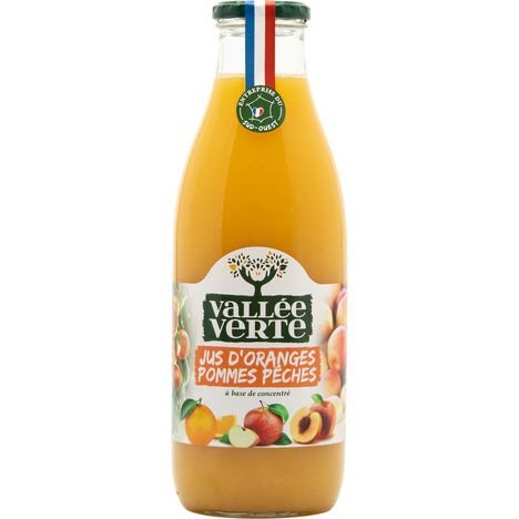 Ce jus Multifruits est fabriqué à partir d'oranges, pommes, pêches, sains, matures.