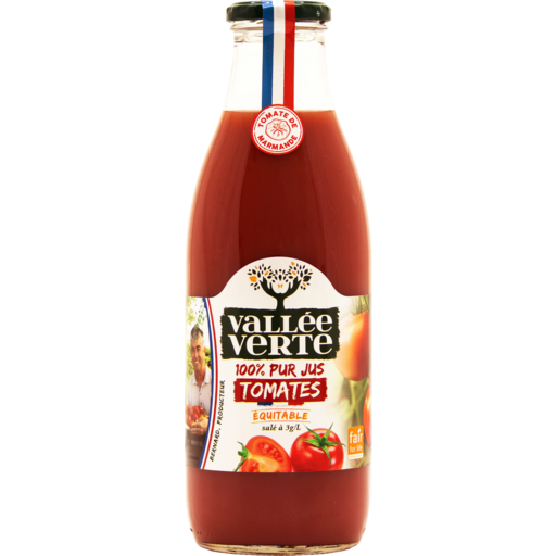 Le Jus de tomate est fabriqué à partir de tomate fraîches, saines, matures. Elles sont cultivées en plein champs par les agriculteurs de la coopérative. Les tomates sont certifiées Global Gap (agriculture raisonnée)