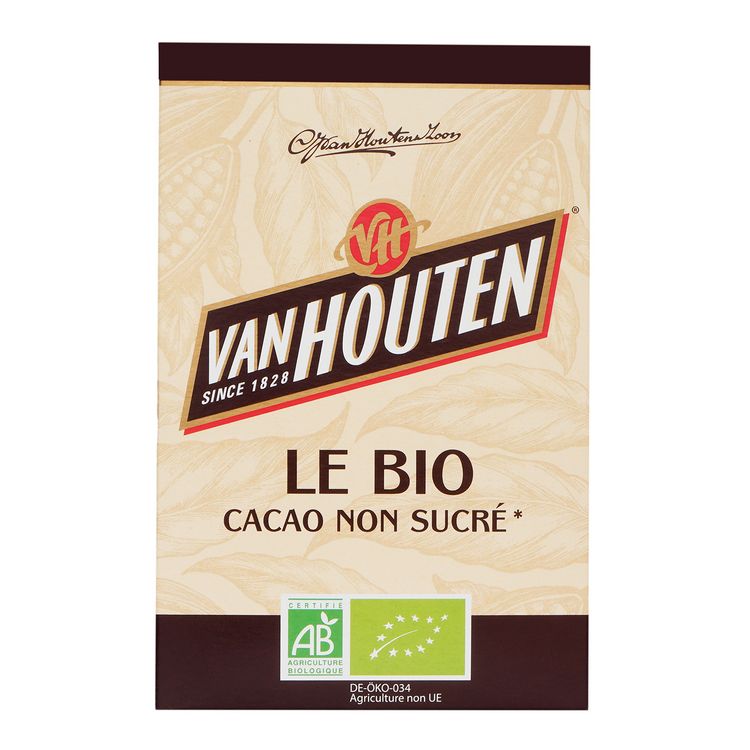 Le Bio Cacao non sucré, est un cacao produit de manière durable en République Dominicaine et soumi à la méthode spéciale de torréfaction qui est le secret de la Maison Van Houten depuis 1828. Une poudre de cacao idéale pour réussir vos pâtisseries, vos décorations et vos boissons cacaotées.