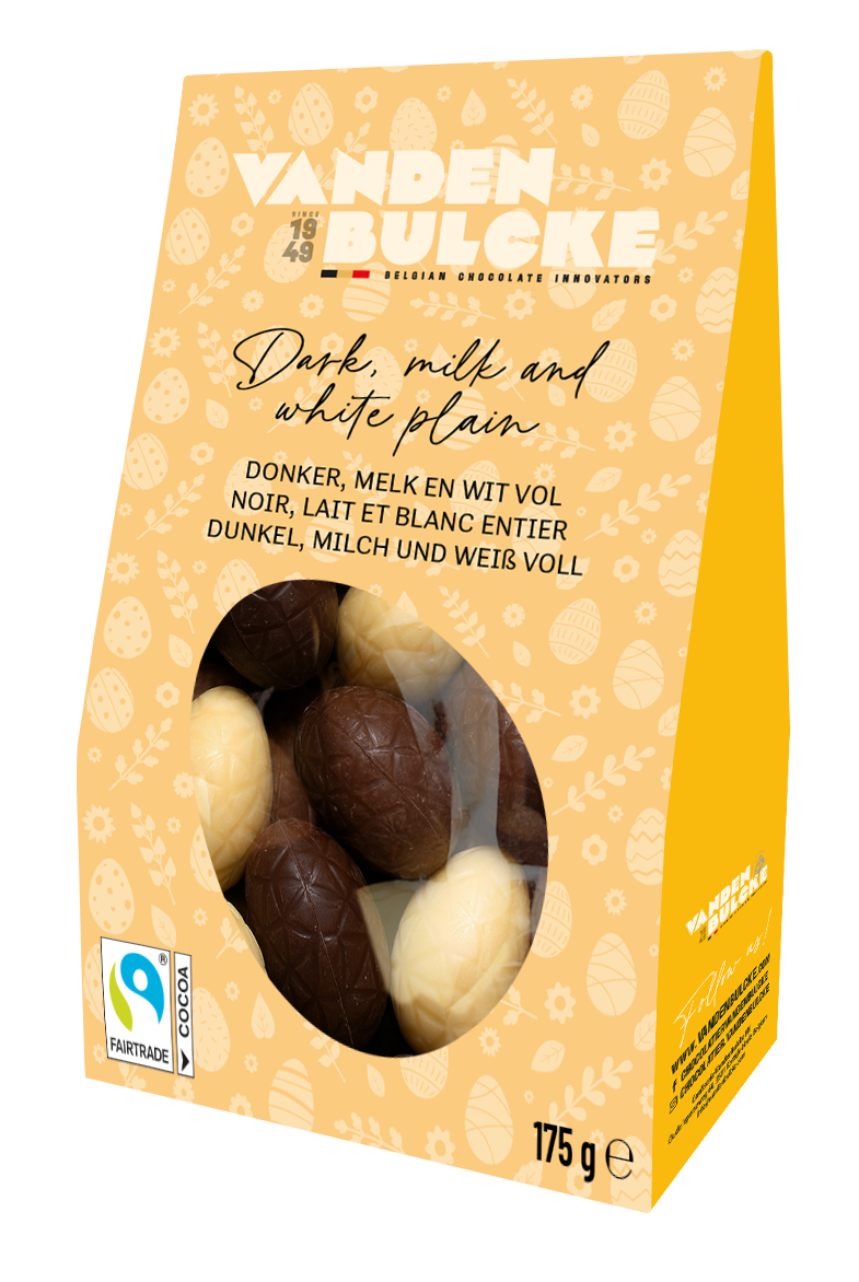 Vandenbulcke Oeufs de chocolat au lait, noir et blanc