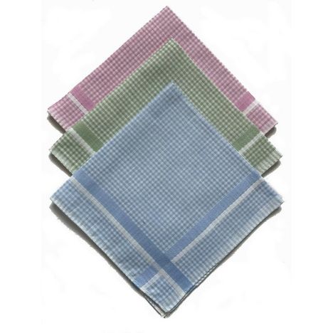 Lot de 12 mouchoirs femme pastel grands carreaux 29x29 cm 100% cotonNous vous proposons ce lot de 12 mouchoirs pour dame de dimensions 29 x 29 cm fabriqués en 100% coton.Lavable à 60°C.