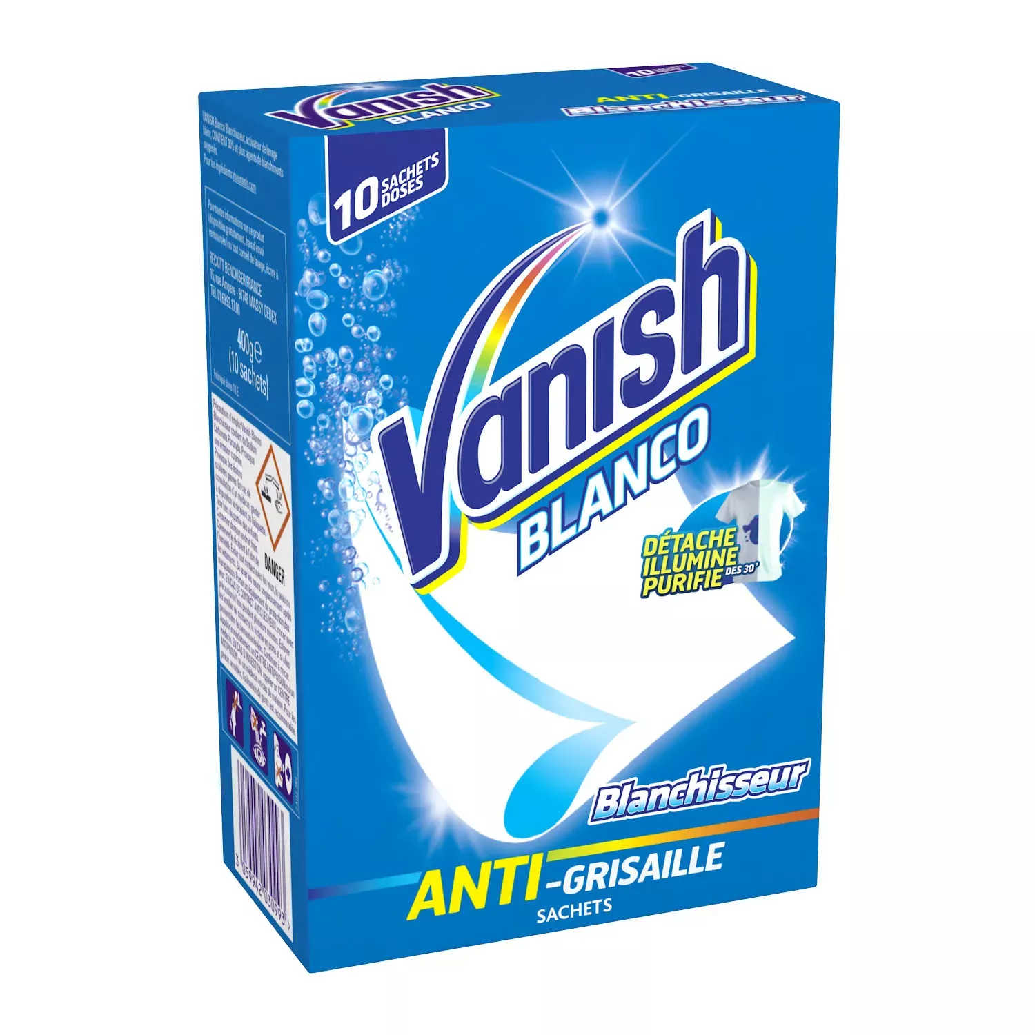 Découvrez Vanish Blanco Blanchisseur ! Les tablettes s'ajoutent à votre lessive, à chaque lavage et vous assure un linge blanc éclatant et purifié en profondeur, et un détachage optimal
