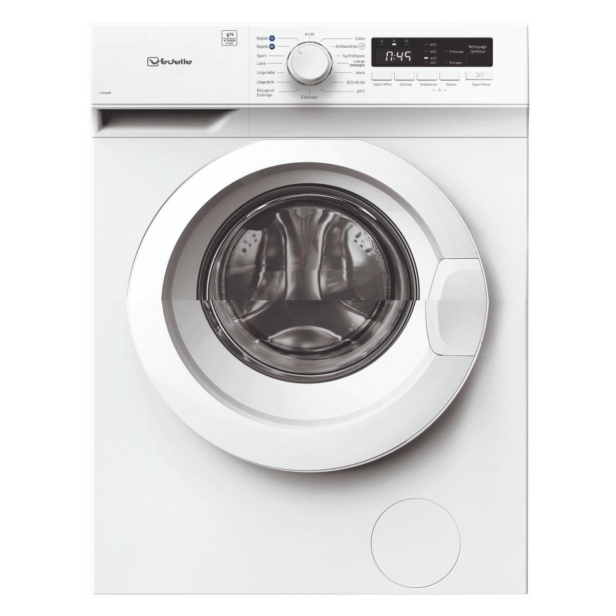 Vedette LFV362W Lave-linge hublot Vedette LFV362W doté de 15 programmes dont Rapide 15' ou 45' et Vapeur Antibactérien. Programme antibactérien vapeur Combinée à un cycle de lavage, l'action de la vapeur au plus profond du linge permet de renforcer l'hygiène et évite la présence de mauvaises odeurs. Express 45' : Ce programme de lavage rapide à 40°C apporte fraîcheur et propreté à une petite charge de linge peu sale. Nettoyage machine : Ce programme vous permet d'assainir l'ensemble de votre machine à une température de 90°C. Il élimine les saletés, les bactéries et les mauvaises odeurs. Le linge sera ensuite lavé dans un environnement parfaitement sain.