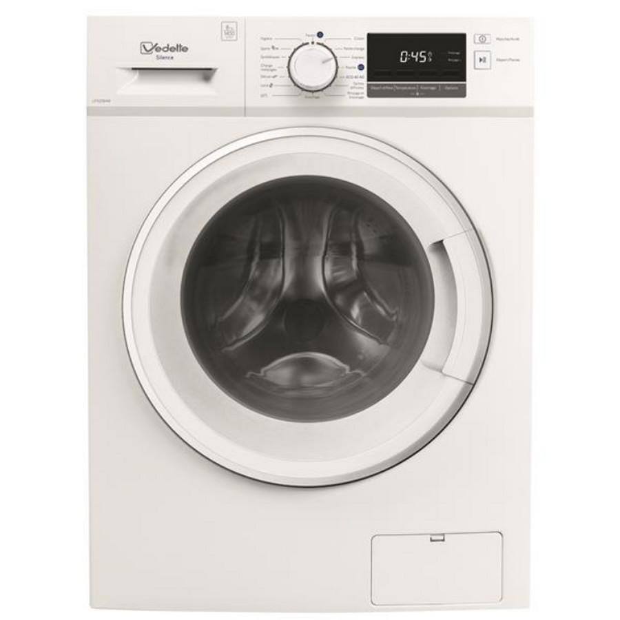 Vedette LFVQ184W Lave-linge hublot Vedette LFVQ184W doté de 16 programmes dont Laine, Rapide 60 minutes et Hygiène : ce programme élimine de vos vêtements et masques les principaux virus et jusqu'à 99,9% des bactéries grâce à une phase de lavage de 30 minutes à une température légèrement supérieure