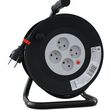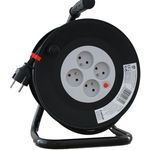 Enrouleur de 25 mètres, idéal pour le bricolage.Câble HO5 VV-F 3G1,5mm2Avec disjoncteur thermiquePuissance maxi câble complétement enroulé : 1100 Watts.Puissance maxi câble complétement déroulé : 3200 Watts.IP20.