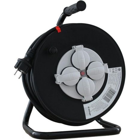 Enrouleurs de 40 mètres avec fermoirs protège-prises, idéal pour les chantiers en extérieur.Câble HO7 RN-F 3G1,5mm².Avec disjoncteur thermique.Puissance maxi câble complétement enroulé : 1100 Watts.Puissance maxi câble complétement déroulé : 3200 Watts.IP44.