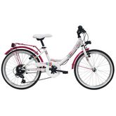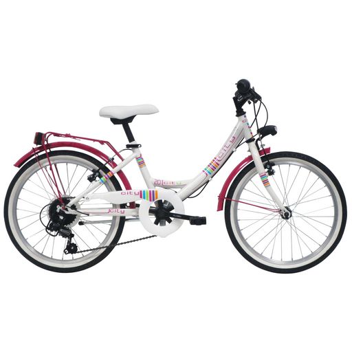 VTC 20 City Fille pour enfant de 115 à 130 cm - Cadre acier avec enjambement bas - Fourche rigide - 6 Vitesses par poignée tournante - Roue libre 6 vitesses - Dérailleur arrière Shimano TY21 - Potence plongeur - Freins V-Brake avec étriers acier & Leviers résine - Jantes aluminium & pneus noirs et blancs - Selle avec attache rapide - Gardes boue - Porte bagages - Béquille - Sonnette - Eclairage à piles fournies - Livré monté à 98%