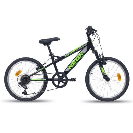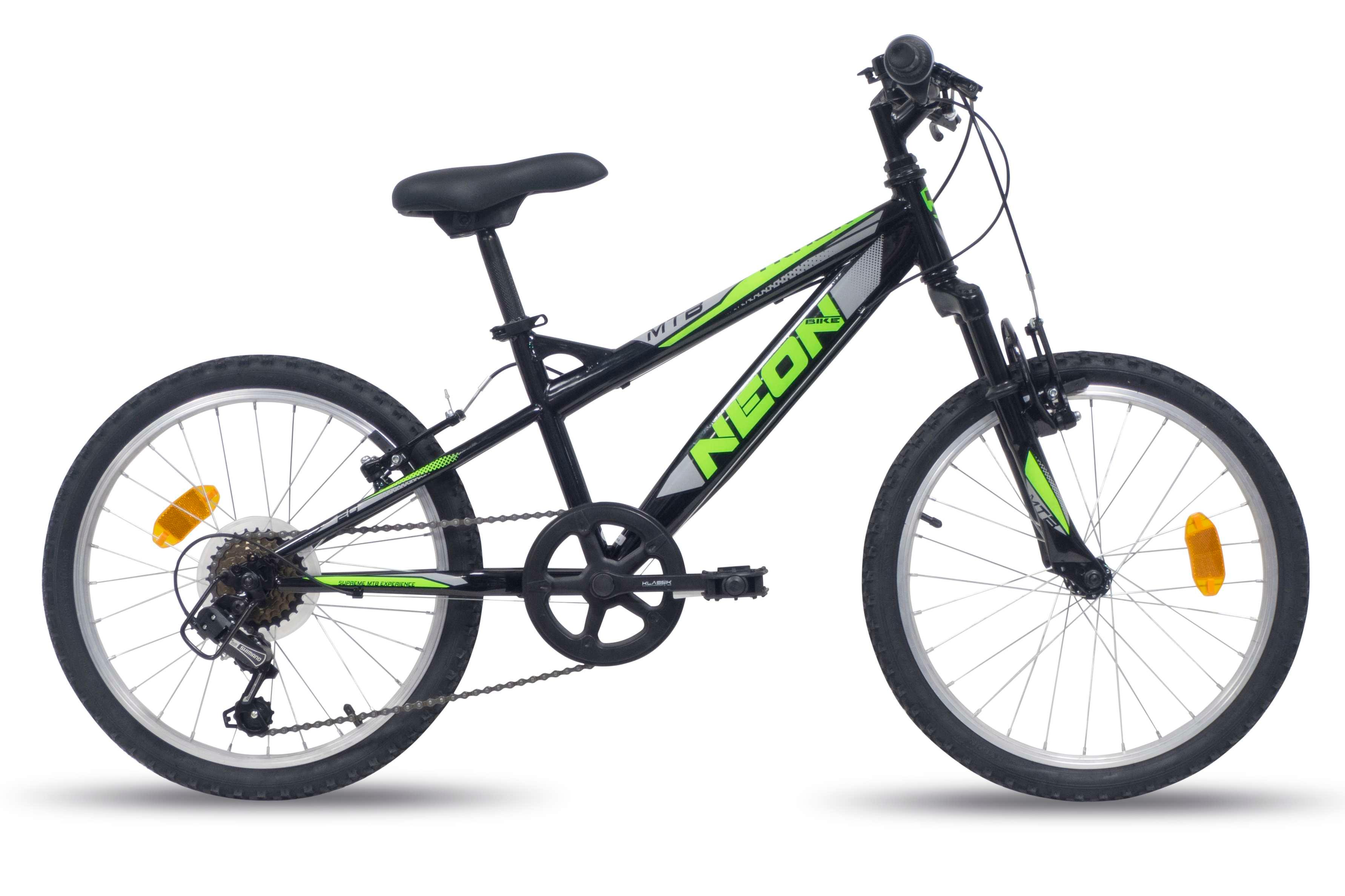 Vélo VTT 20'' Cadre Rigide - Fourche Télescopique - 6 Vitesses Dérailleur SHIMANO - Protège Dérailleur - Freins V-BRAKE - Jantes aluminium - Selle Réglable en hauteur par attache rapide - Livré avec éclairage LED à piles fournies - Marquage ICA BIKE et enregistrement au Fichier National Unique des Cycles Identifiés.