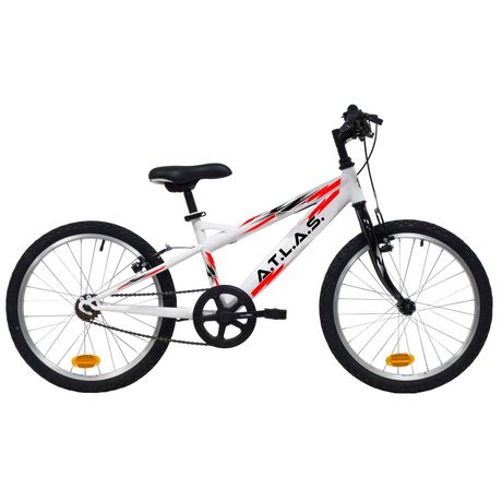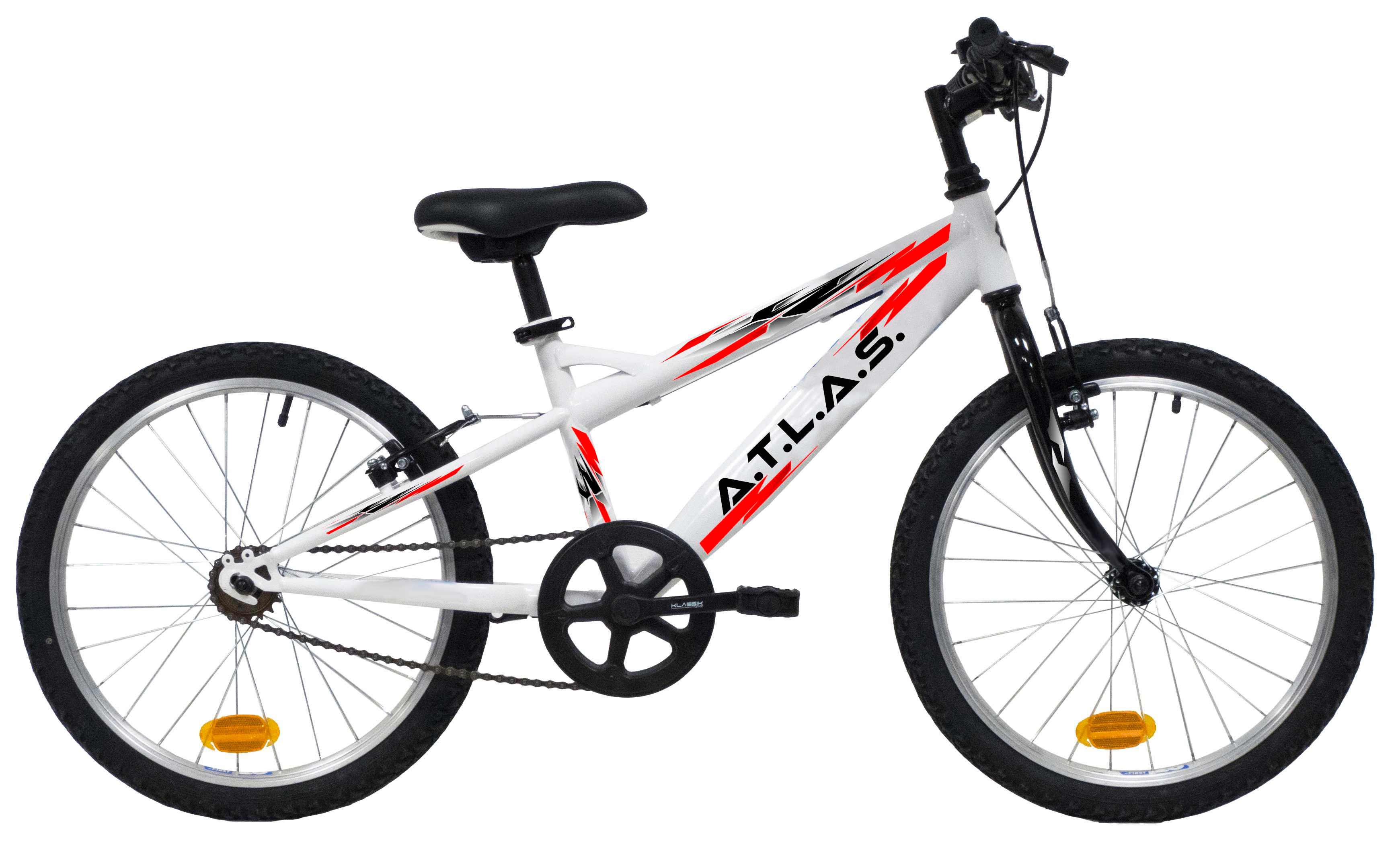 VTT 20'' Rigide Mixte ATLAS pour enfant de 115 à 130 cm - Cadre acier - Fourche rigide - Monovitesse - Frein avant et arrière V-brake acier - Jantes aluminium & pneus noirs - Sonnette - Eclairage LED à piles fournies
