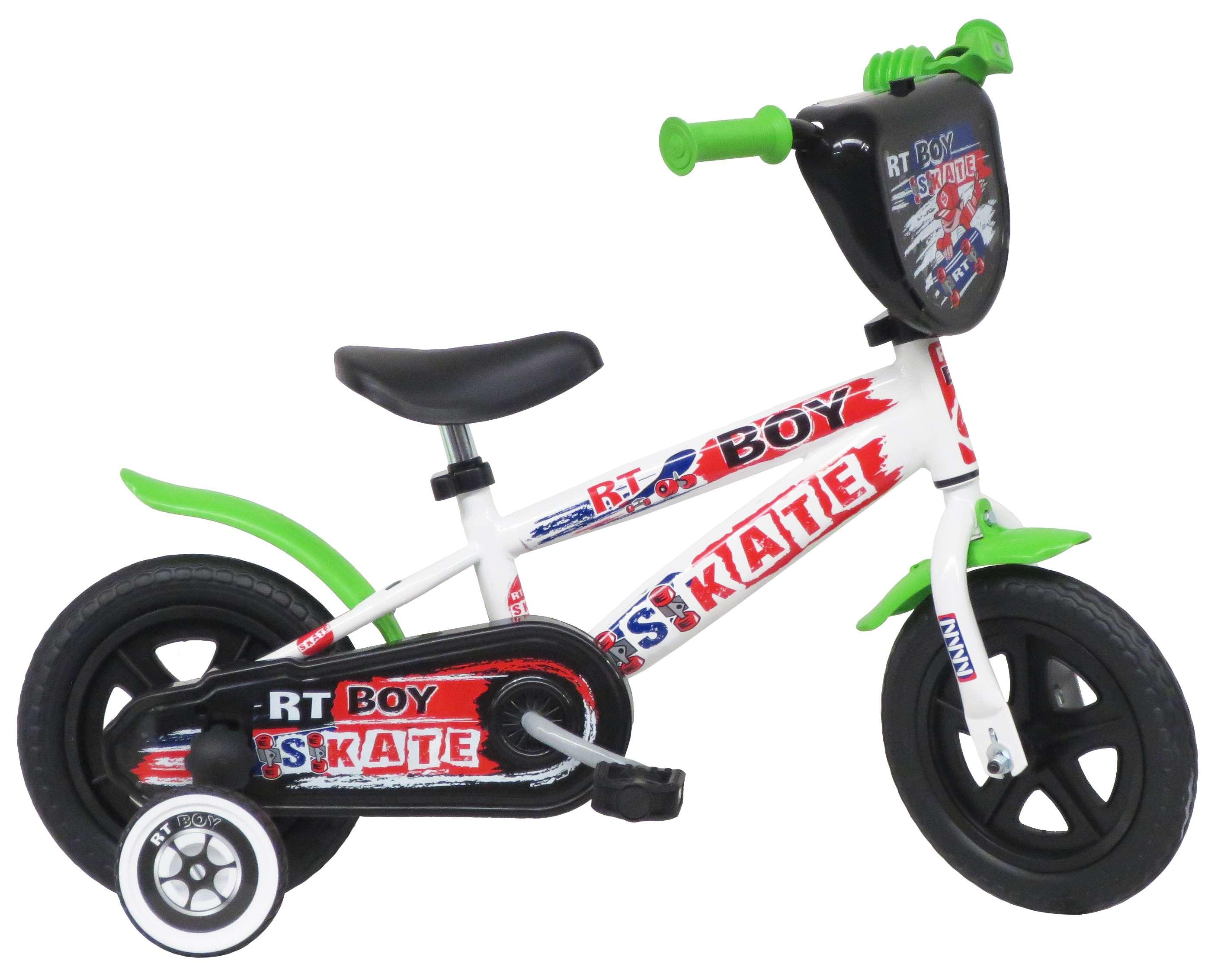 Vélo 10 Garçon Skate pour enfant de 75/90 cm - Cadre Acier - Direction et pédalier en nylon - Pignon fixe - Carter de chaîne intégral - Gardes boue et poignées spécifiques pour augmenter la protection de l'enfant - Roues bâtons - Pneus EVA increvables - Stabilisateurs (montage sans outil) - Plaqu