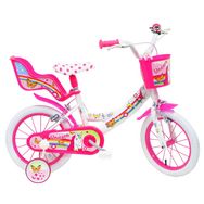 Vélo enfant - Modèle 14'' Fille Licorne / Unicorn pour enfant de 95/110 cm avec stabilisateurs - Panier avant - Porte poupée arrière - 2 freins