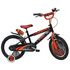 Vélo 16 Garçon Street Art pour enfant de 105/120 cm - Cadre Acier - Direction et pédalier en nylon - Roue libre monovitesse - Freins avant et arrière Calliper - Selle réglable - Carter de chaîne intégral - Gardes boue et poignées spécifiques pour augmenter la protection de l'enfant - Jantes à rayons - Pneus gonflables noirs - Stabilisateurs (montage sans outil) - Plaque décorative avant - Gourde - Avertisseur sonore - Eclairage à piles fournies