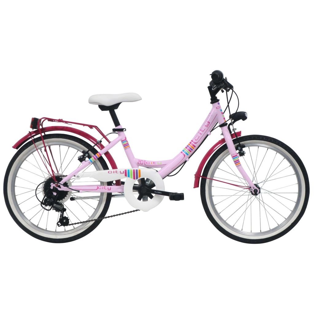 Vélo enfant - VTC 20'' Rigide Fille - Cadre acier - Modèle Ville - 6 vitesses - Dérailleur Shimano - Freins V-Brake - Equipé City
