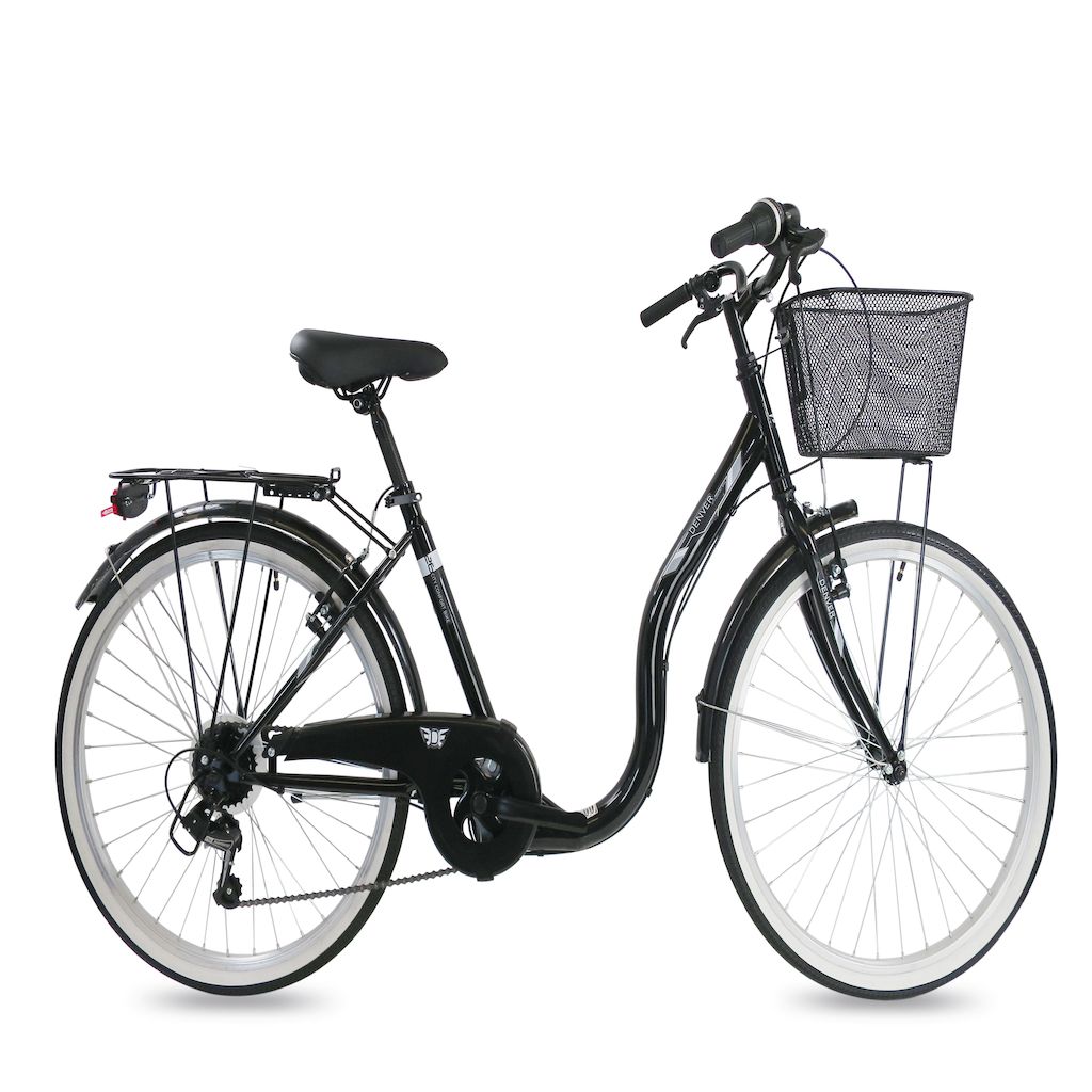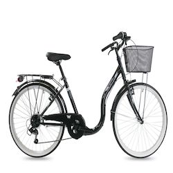 Vélo Ville 26'' City - 6 Vitesses - poignée tourante et dérailleur Shimano T21 avec cadre eNjambement bas et équipement City complet