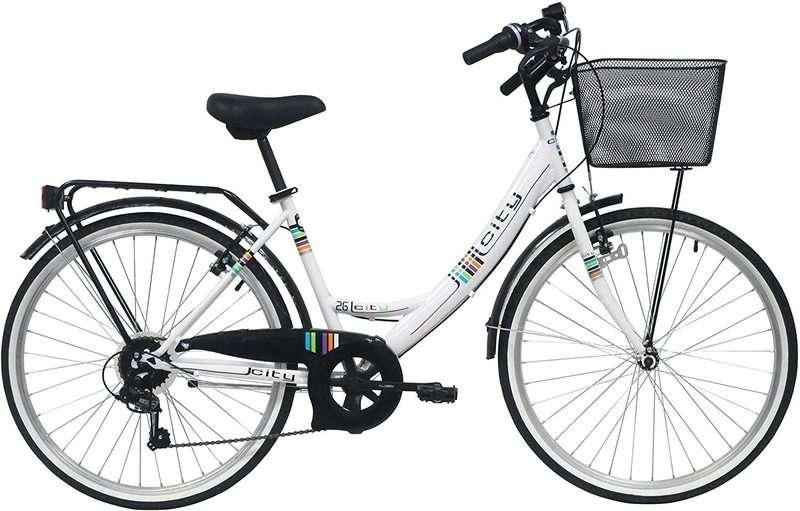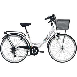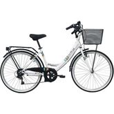 Vélo VTC 26'' City Rigide Femme Acier - 6 vitesses - enjambement bas - Shimano - Panier avant - Porte bagages - garde boues et jantes en aluminium