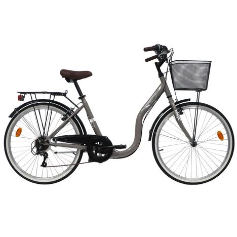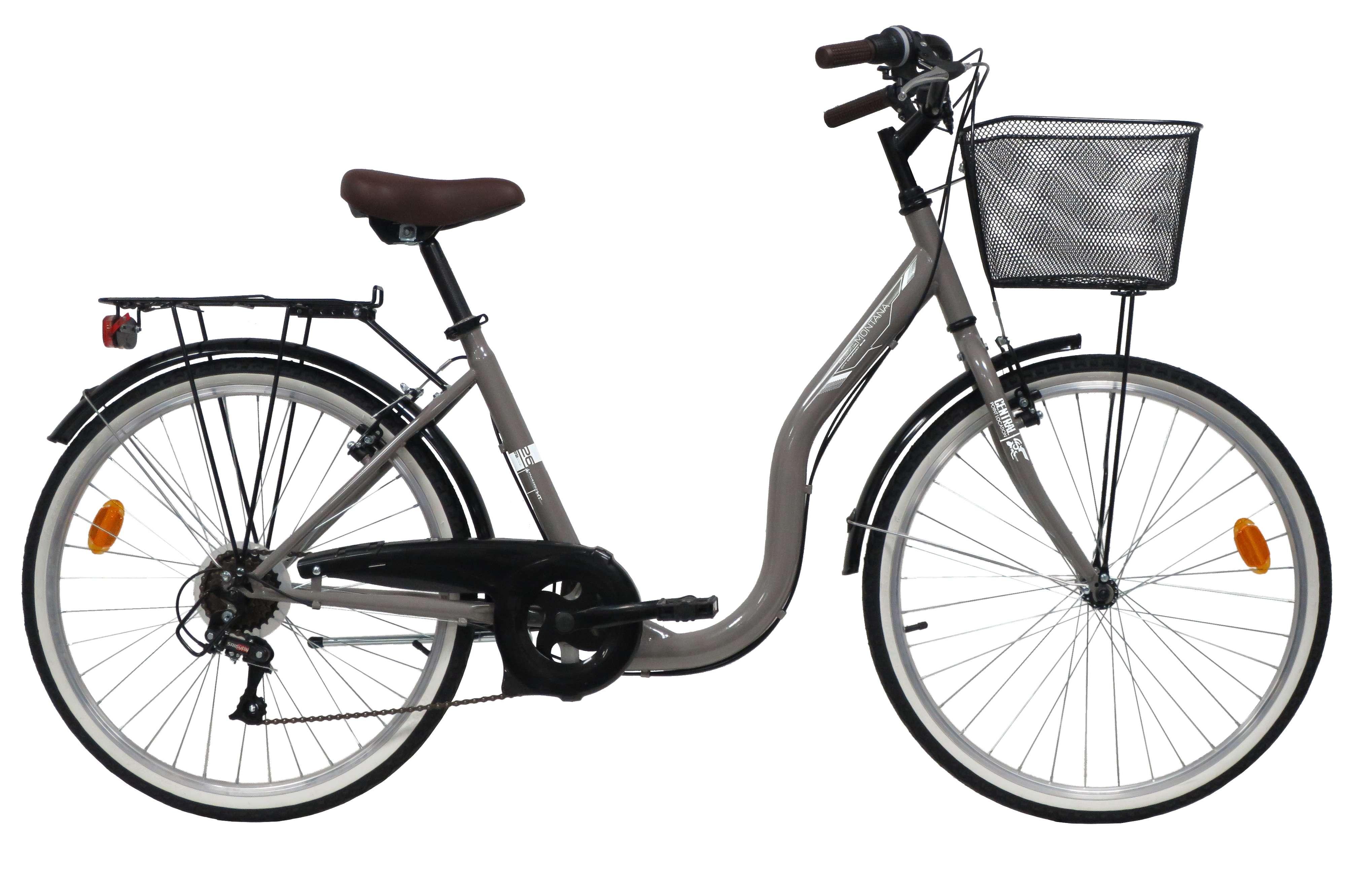 Vélo VTC 26'' Rétro City Rigide Femme Acier Montana - 6 vitesses - Enjambement bas – Freins V-Brake - Panier avant - Porte bagages
