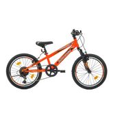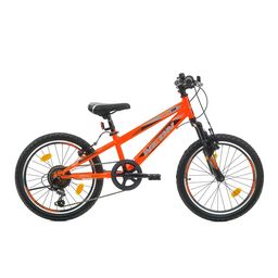 Vélo enfant VTT 20'' idéal pour un enfant de taille comprise entre 1.20m et 1.40m équipé d'une fourche téléscopique, cadre acier rigide octogonal, 7 vitesses via une poignée tournante et un dérailleur Shimano TY21 arrière, Freins V-Brake en aluminium, potence Headset, pneu noirs, selle réglable en h