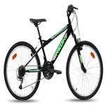 Vélo 24'' Fourche télescopique avec cadre acier et fourche télescopique équipé de 18 vitesses via des poignées tournantes et d'un dérailleur Shimano TY21. Ce modèle est équipé de freins V-Brake à l'avant et à l'arrière, d'une potence plongeur, de jantes en aluminium 36 rayons, de pneus gonflables, d