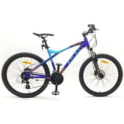 VTT 26'' rigide Atlas - Cadre rigide Aluminium - Fourche télescopique - 24 Vitesses indexées par poignées à gâchette Shimano - Roue libre 8 vitesses Shimano - Dérailleur avant et arrière Shimano Altus - Potence Head set - Frein avant et arrière à disque hydraulique - Leviers de freins en alumin
