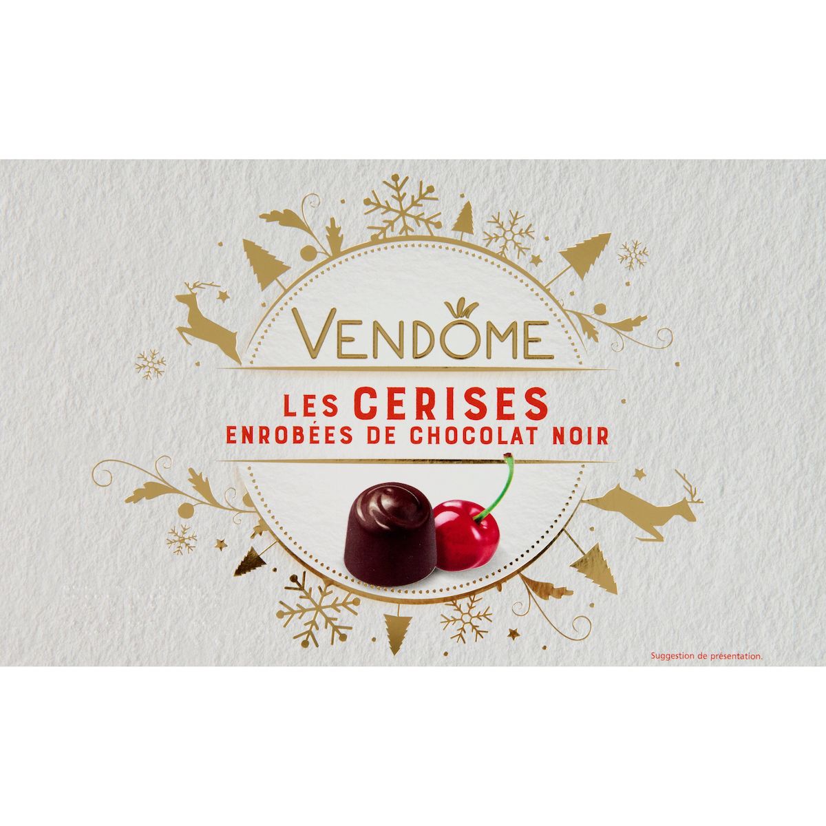 Bonbons de chocolat noir fourrage (39%) cerises à l'alcool (16%)