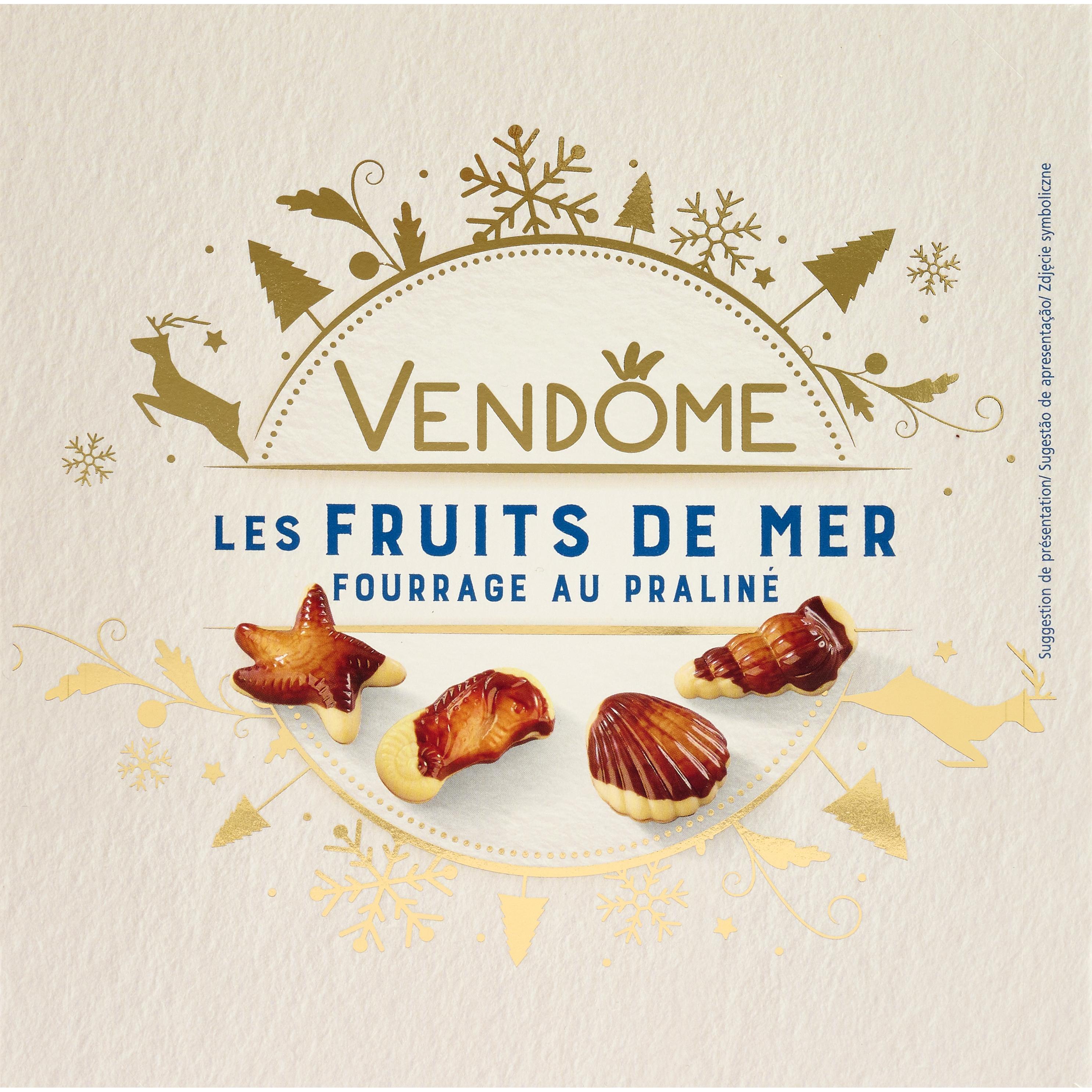Chocolats moulages fruits de mer fourrés au praliné