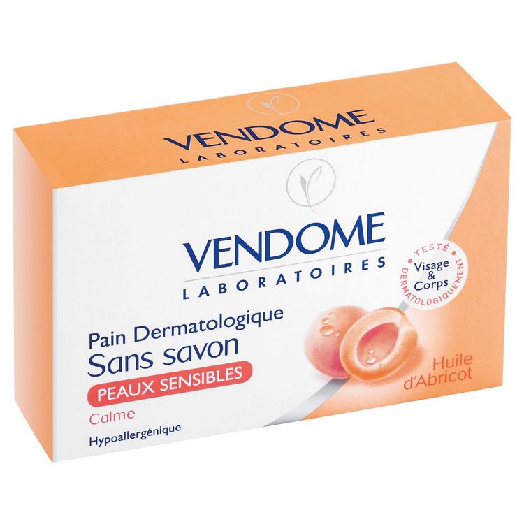 Pain Dermatologique Sans Savon Peaux Sensibles à l'Huile d'Abricot Le pain dermatologique Sans Savon, nettoie la peau en douceur, soulage les sensations de tiraillement et adoucit les peaux sensibles. Sa formule enrichie en Huile d’abricot Bio est adaptée pour la toilette quotidienne du visage et du corps
